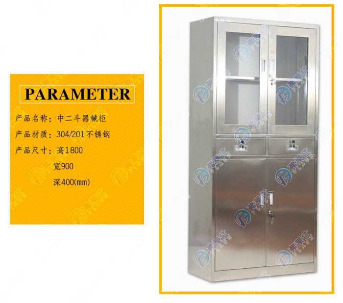 顏色:304/201不銹鋼 規(guī)格:高1800*寬850/900*深400mm 用途:光滑無(wú)毛刺,美觀又方便,采用優(yōu)質(zhì)鎖具,開(kāi)啟順滑,進(jìn)口不銹鋼板,品質(zhì)好,經(jīng)久耐用。適用于醫(yī)院、藥房、診所、實(shí)驗(yàn)室等。