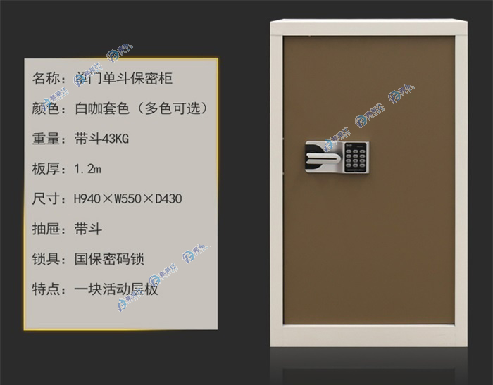 顏色:白咖套色 規(guī)格:H940xW550xD430mm 用途:適合儲放各種貴重物品:重要檔案,珍貴財物,公司印章,貴重器材等